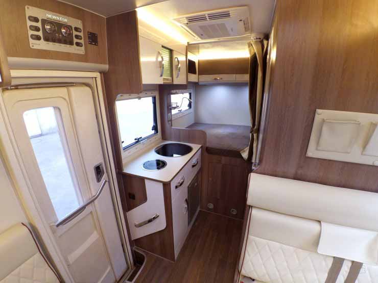 通常情况下,饱满的大额头是自行式C型房车的显著特征,同时也起到提供睡眠空间的作用。但在自行式C型房车中也有着一些特别的存在,采用小额头设计的C型房车有着独特的造型以及灵巧流畅的车身线条,同时车辆的动态性能也得到了很大改善。新星房车通途系列T600风尚款兼具C型车的大空间和B型车的操控性,是一款极具性价比的车型;