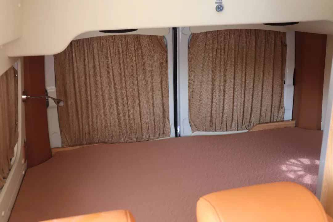 车尾部是一张床,由于车身宽度限制,个子高的朋友可能会睡得不是很习惯。