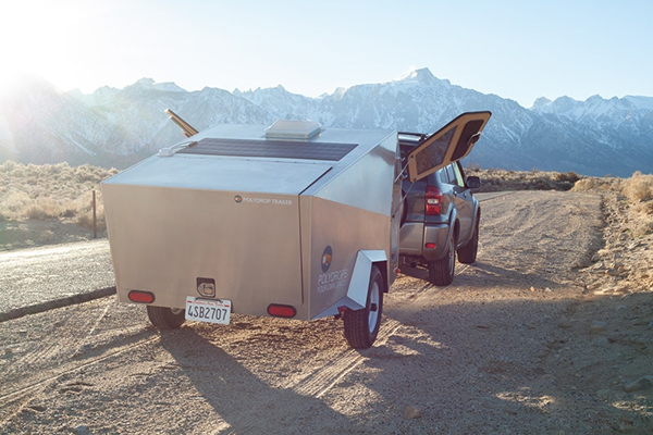 Polydrop拖挂房车是基于1.2 x 2.4米的铝制底盘改装而成,结合了轻木结构和铝制轮廓,使得重量仅为345公斤。它对于牵引车来说非常轻,让车主在选择牵引车时具有足够的灵活性。对于这种轻型拖挂车来说,制动不应该是一个大问题,但Polydrop增加了液压盘式制动系统以达到准确的制动。该车配备的是544公斤的Timbren独立悬架,标配的是13英寸拖挂车轮。